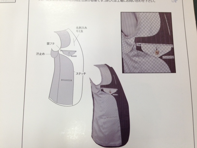 これは本台場仕立てといい、通常の内ポケットにあたる部分に表地(生地)を