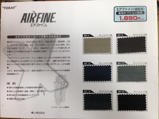 そんな時用に裏地だけでもAIR FINEにしてみては・・・。