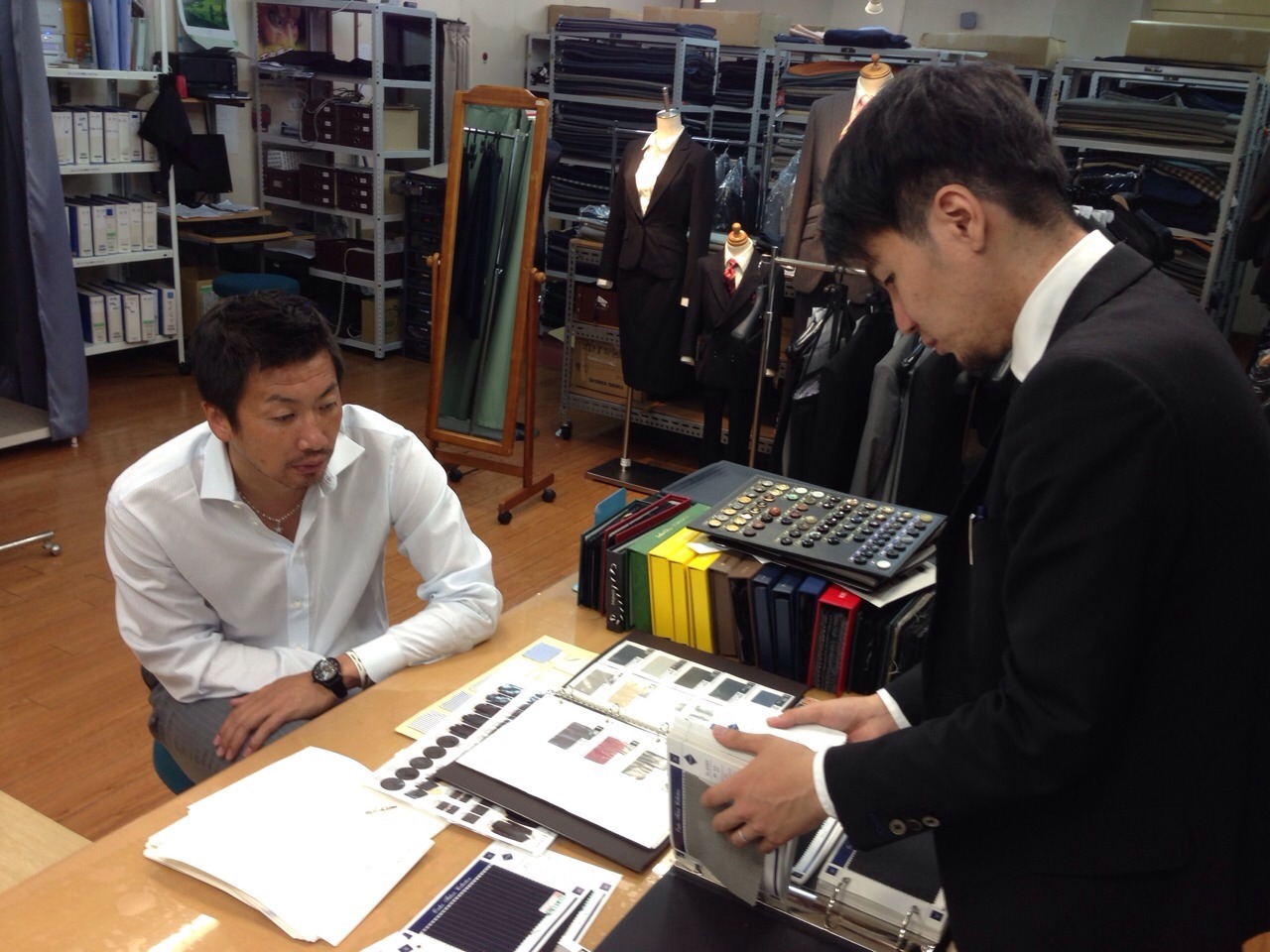 ちなみに選んでいただいた生地は濃紺のオルタネイトストライプスーツとグレージャケット、ライトカラーのオーダーパンツ、国産オーダーシャツ2枚です。