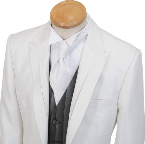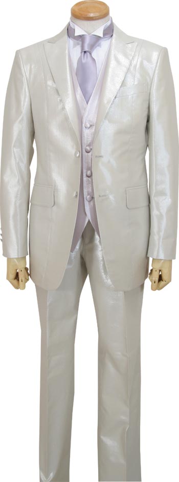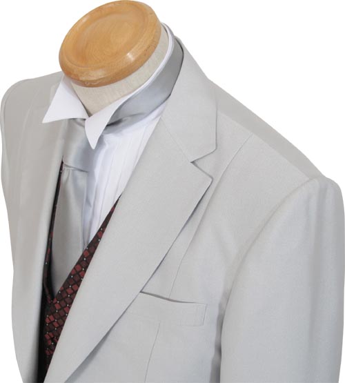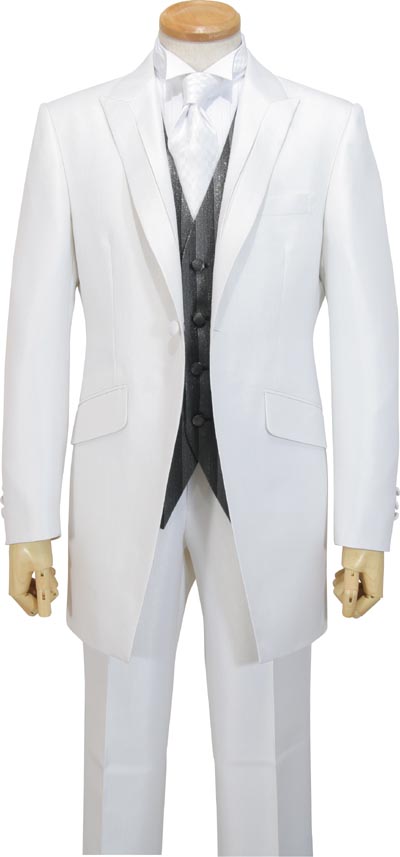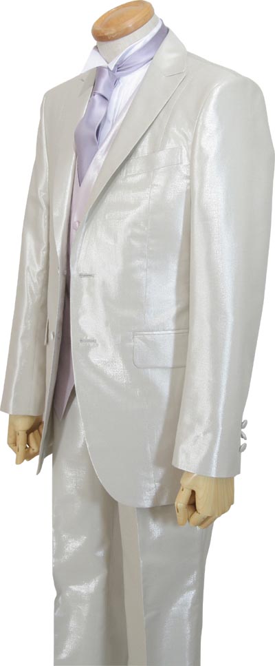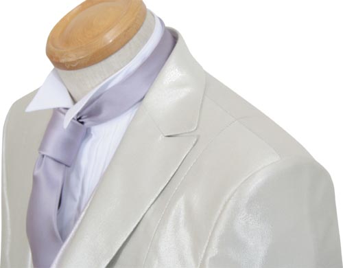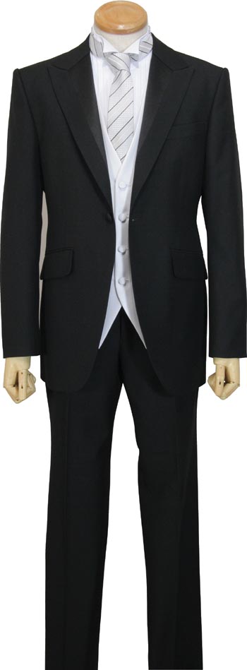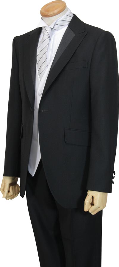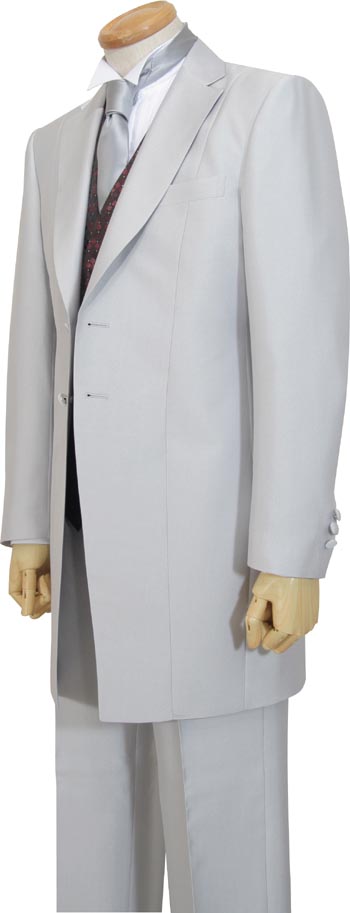 ラペル部分が拝絹地と共地の切り替えしになっており、タキシードやモーニングコートに近い、よりフォーマルなデザインが特徴。