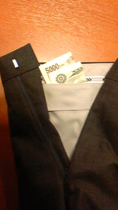 ドルポケットとは、パンツの内側に付いている隠しポケットのことで、ジャケットの内ポケットより紛失の心配が少ないため、お札や貴重品をしまっておくには非常に便利なポケットなのです。