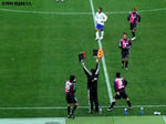 西澤選手が先にピッチへと入りその後、森島選手と名波選手が同時にピッチへ。