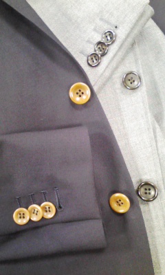 スーツを作る最初の段階で、予めボタンを替えておくのがベター。