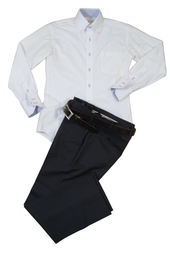 セレッソモデルオーダーシャツと合わせればこんな感じ。さわやかな雰囲気が◎です。