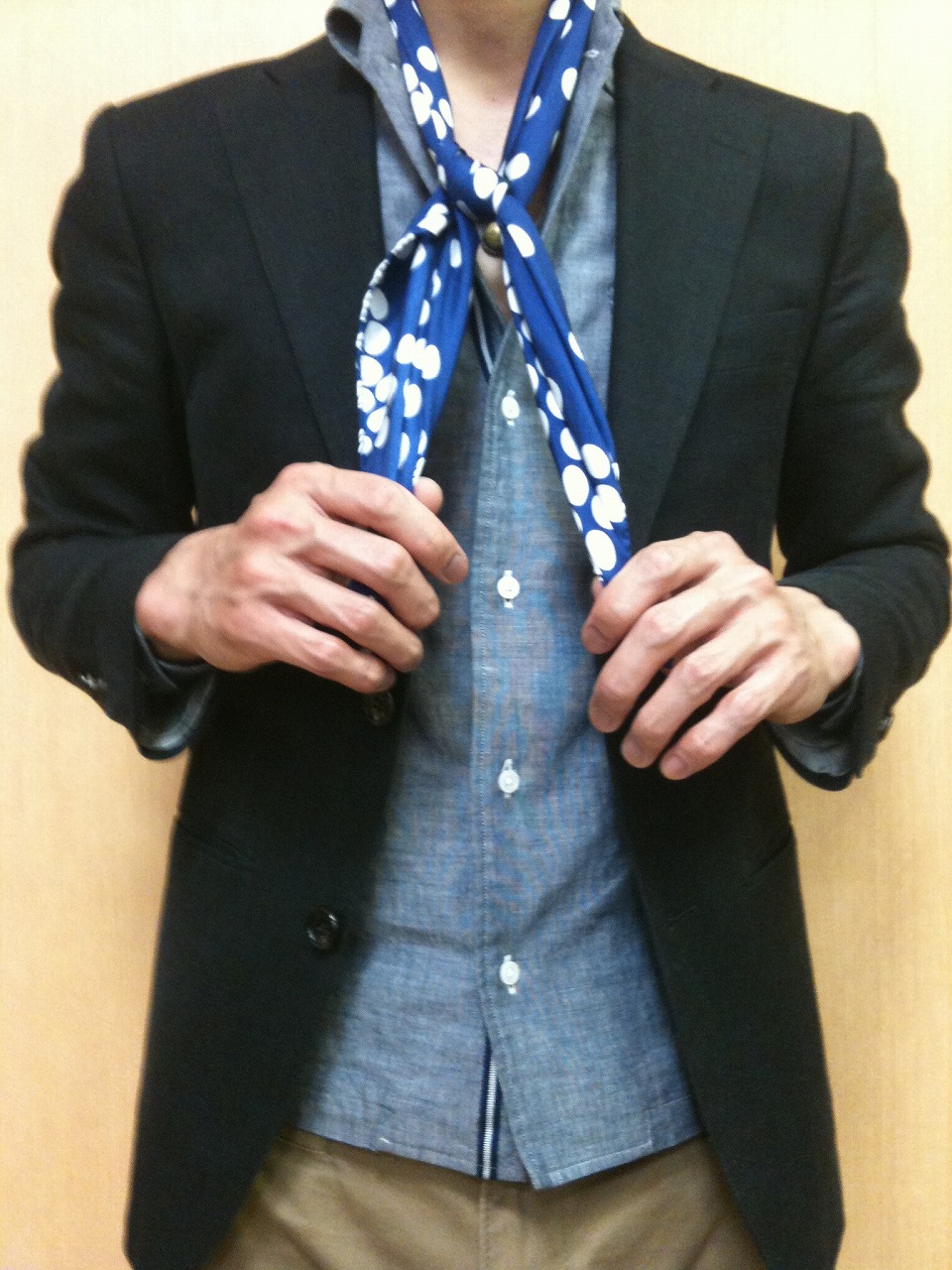 このこぶ結びですが、ドレッシーになりすぎず、かつ艶感を演出できるので夏場のジャケパンスタイルにピッタリなんです。
