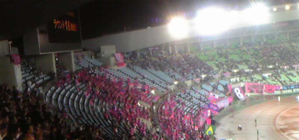 前半30分に先制点を許して苦しい状況のまま時間が経ち、これでキンチョウスタジアム不敗神話も終わってしまうのか・・・と思ったロスタイム。小松選手がやってくれましたよ!途中交代で入った永井選手とのコンビで執念のゴール!!ほんとよく決めてくれましたよっ。これもサポーターの応援があったからこそです。やっぱりキンチョウスタジアムすげぇです。