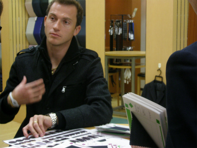 生地やデザインなのですが、お話を伺うと全体的に落ち着いた感じのスーツを作りたい。との事。今回もいつものように語り口調は穏やかで、なんとも言えない落ち着いた雰囲気でお好みの生地やデザインを選ばれていました。