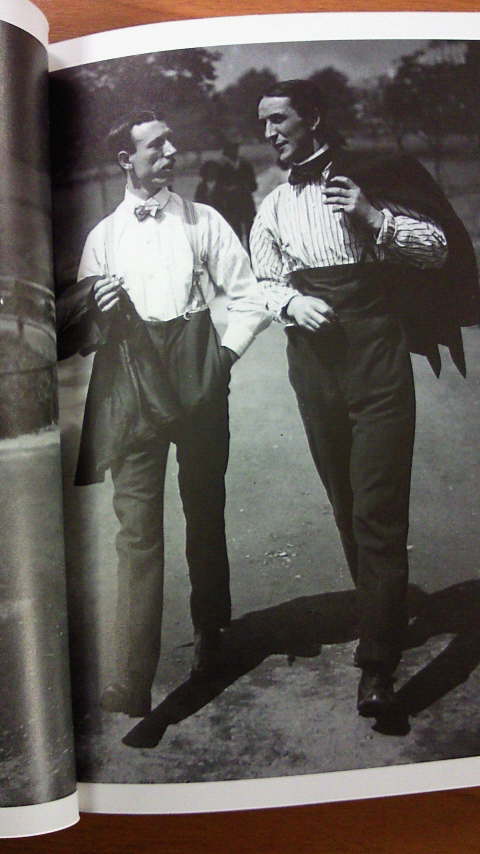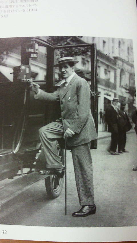 麦わらのカンカン帽にゆったり目のスーツ。映画の1シーンのようですが、当時はこういったファッションが定番だったようです。