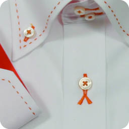 第二ボタンホールのところに工夫が施されていて、なんとオレンジリボンの形になっています。