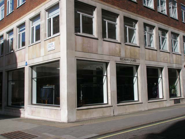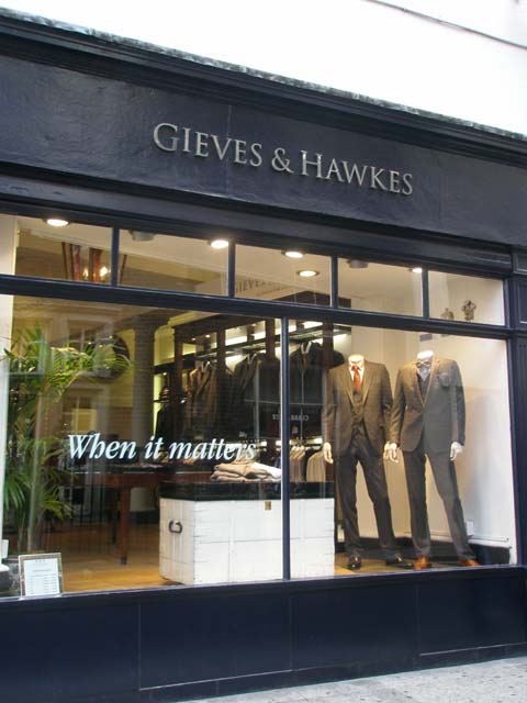 ロイヤルワラント(英国王室御用達)に認定された格調高い紳士服の仕立て屋が、数多く軒を連ねる通りです。