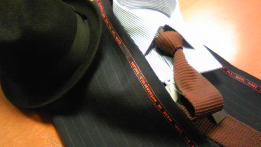 オーソドックスな部類に入るかもしれませんが、濃紺にチョークストライプはクラシック柄で、昔のブルースマンを意識させ、いつの時代に着ても格好良い生地です。
