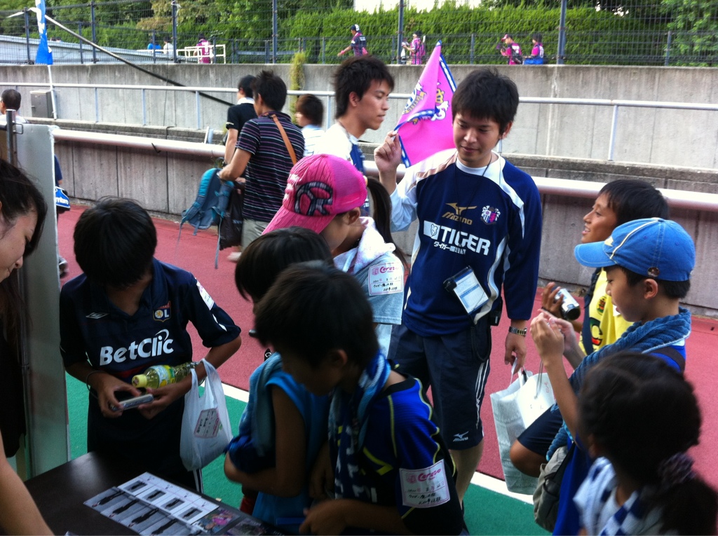 で、この日は試合前に「ライフカップ第36回大阪府少年サッカー選手権大会」の開会式もあり、いつもより開門時間が早く、それに合せてサポーターやスタッフの方達も準備をして・・横断幕類や大きな応援道具の設置されるサポーターの方達は午前中から準備されていたそうです。