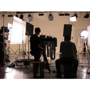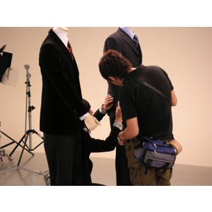 スーツの撮影はどうしても影がでてしまうので、カメラを固定して同じ位置で、照明のあて方を変えて撮影します。